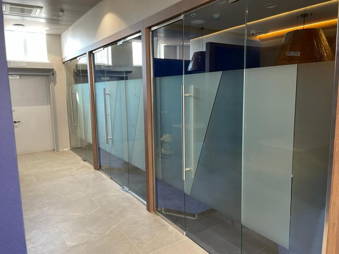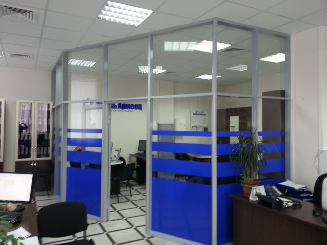 Перегородки могут быть в профиле - каркакасные, так и без - цельностеклянные. Могут быть с обычной звукоизоляцией или с повышенной.